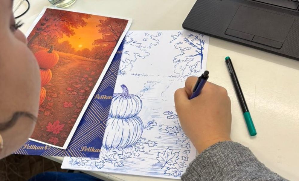 Unsere drei Schülerinnen im Projekt "Talent und Verantwortung" waren letzte Woche zu einem Kunstprojekt an der Mittelschule in Miltenberg. Ziel war es zunächst die KI ein Bild erstellen zu lassen, das anschließend - ganz analog mit Kohlepapier abgepaust wurde (siehe unsere Beitragsbilder). Diese Strichzeichnung wurde dann digitalisiert und erneut der KI übergeben, die Veränderungen und Verbesserungen vornehmen sollte. Nini, Meisam und Ronja hatten dabei viel Spaß und freuen sich schon auf die nächste Veranstaltung.