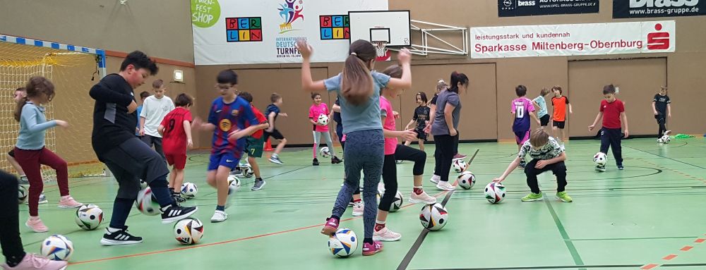 Heute war das DFB Mobil mit zwei Coaches bei uns an der Schule und die Schülerinnen und Schüler der Grundschule wurden in der Turnhalle trainiert. Die einzelnen Klassen haben sich dabei abgewechselt und hatten viel Spaß bei der Aktion. Gewonnen hatten wir die Aktion durch die Teilnahme an der Ballheldenaktion im letzten Jahr, die ein weiteres Schulsporthighlight bei uns ist.
